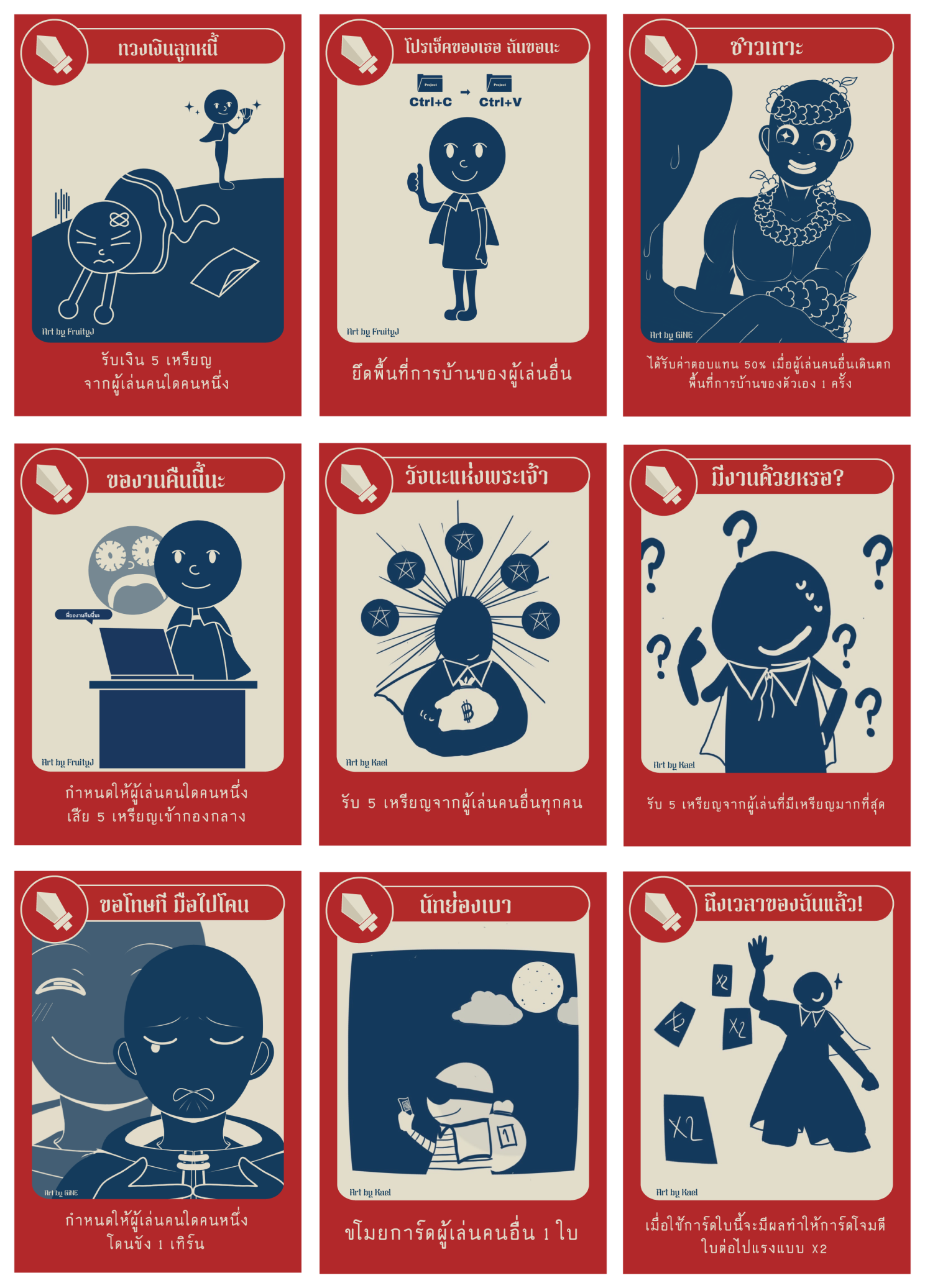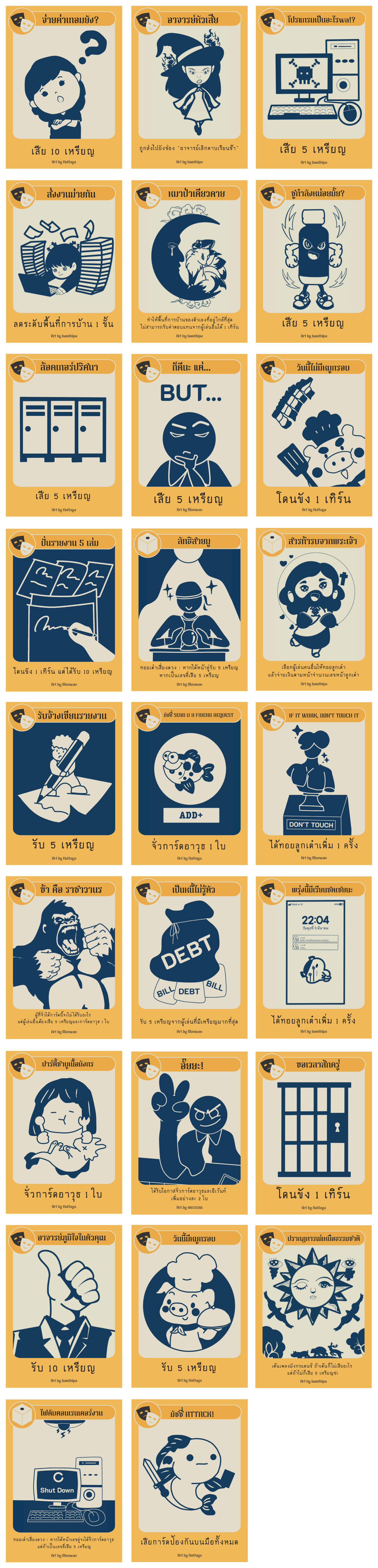 เป็นการ์ดที่สามารถถือเก็บไว้ได้ โดยใช้โจมตี ผู้เล่นคนอื่น เพื่อลดเหรียญ ขโมยการ์ด หรือกักขัง แล้วแต่จะคิดชีวิตคนละแบบ